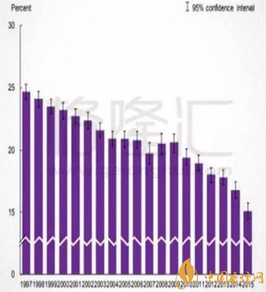 但是菲利普莫里斯國際和奧馳亞近年來業(yè)績有所下滑,主要受到全球控?zé)熁顒?、卷煙提稅順價、部分地方控?zé)熯^激等多重壓力的影響,導(dǎo)致全球煙草市場呈現(xiàn)不同程度的下降趨勢。除了全球范圍的控?zé)熯\(yùn)動以外,隨著人們收入水平的不斷提高,人們對健康的意識越來越強(qiáng),傳統(tǒng)卷煙銷量將不斷下滑。在1990年至2017年期間,全球吸煙率從29.4%下降到了15.3%。以美國為例,美國疾病控制與預(yù)防中心的統(tǒng)計數(shù)據(jù)顯示,美國成年人的吸煙率從2000年的23.2%下降到2016年的15.2%。