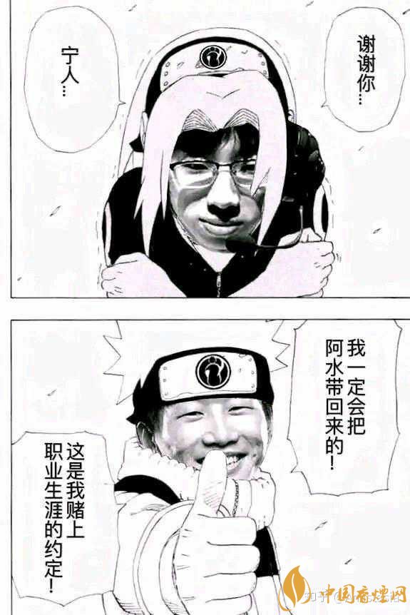 而且最關(guān)鍵的是有網(wǎng)友直接把那個(gè)小櫻讓鳴人帶佐助回來的畫面給P稱了把阿水帶回來,最后春野藍(lán)說:謝謝你,寧人!所以這歌“謝謝你寧人”就直接火起來了!