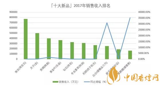 以銷售收入評(píng)價(jià),「十大新品」2017年合計(jì)銷售收入達(dá)到354.3億元,同比增加139.3億元,增長(zhǎng)64.7%,平均單箱批發(fā)均價(jià)達(dá)到6.2萬元;銷售收入最高的「南京(雨花石)」達(dá)到77.4億元,最少的「黃鶴樓(硬銀紫)」只有16.3億元;單箱批發(fā)均價(jià)最高的「南京(雨花石)」達(dá)到13.25萬元,最低的「黃鶴樓(硬銀紫)」只有3.25萬元。