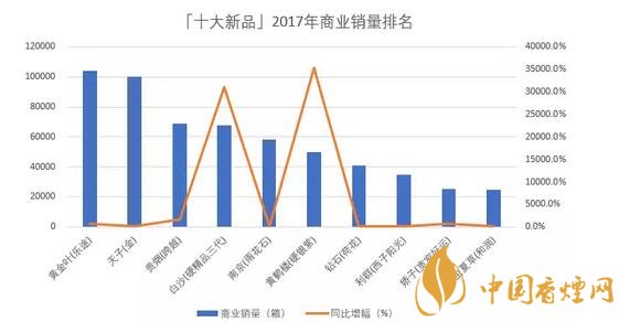 以商業(yè)銷量衡量,「十大新品」2017年合計(jì)銷量57.4萬箱,同比增加40.1萬箱,增長(zhǎng)230.8%;十款產(chǎn)品的平均銷量突破5萬箱,平均增量達(dá)到4萬箱;銷量最大的「黃金葉(樂途)」突破10萬箱,最小的「冬蟲夏草(和潤(rùn))」也有2.4萬箱;增量最大的「黃金葉(樂途)」超過9萬箱,最少的「利群(西子陽光)」同比增加1.1萬箱。