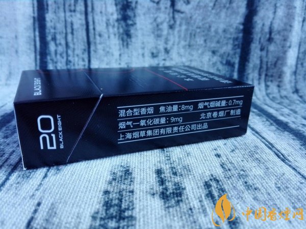 中南海典8煙盒正反兩面的上端,直接標(biāo)有BLACK EIGHT字樣,就是黑8的名稱??v觀煙盒的整體構(gòu)造與設(shè)計(jì),顯得極為簡潔明了。煙盒的色澤,只有黑紅白三種。大黑色調(diào)打底,紅色加以修飾,帶來的視覺感,非常明快。黑8的煙盒材質(zhì)摸起來,實(shí)在太光滑了。如果在光線充足的環(huán)境下平視,會(huì)很清晰地看到手指撫摸過的痕跡。形似指紋狀的波浪線紋。紅色的阿拉伯?dāng)?shù)字8印制于煙盒之上,異常地顯眼。