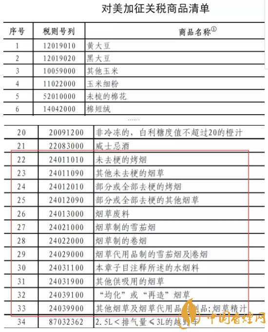 最近兩周中美貿(mào)易戰(zhàn)成為全球關(guān)注焦點(diǎn)。截止到目前雙方過(guò)招三回合,這場(chǎng)拉鋸戰(zhàn)中,2018中美貿(mào)易戰(zhàn)最新消息:細(xì)心的網(wǎng)友注意到,有12項(xiàng)煙草制品及原料出現(xiàn)在對(duì)美加征關(guān)稅商品清單中。下面香煙網(wǎng)小編為大家整理介紹。