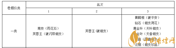 一類價(jià)位細(xì)支煙綜合質(zhì)量排名如下: