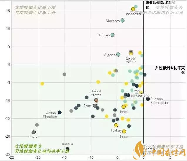 自2000年以來(lái),幾乎全球每個(gè)國(guó)家的女性吸煙者比率都有所下降,女性吸煙的危害有哪些,可能大家意識(shí)到女性吸煙的危害比男性還大。,而男性則迥然不同。
