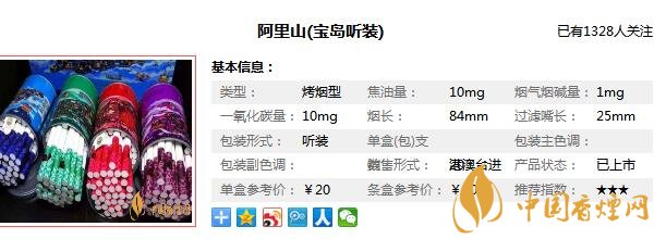 以上內(nèi)容是由香煙網(wǎng)小編為大家介紹的關于,阿里山1905多少錢一罐以及阿里山香煙1905鐵罐價格圖片相關的信息,想要了解更多有關內(nèi)容請點擊:阿里山印象細支多少錢。