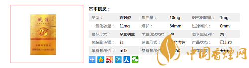 | 類型 :烤煙型 | 焦油量 :10mg | 煙氣煙堿量 :1mg | 一氧化碳量 :11mg |