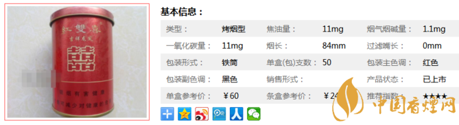 三、紅雙喜吉祥龍鳳香煙參數(shù)