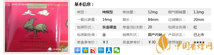 大雞香煙價(jià)格表圖 大雞富貴香煙口感及參數(shù)