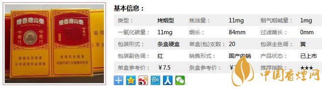 | 類型 :烤煙型 | 焦油量 :11mg | 煙氣煙堿量 :1mg | 一氧化碳量 :11mg |