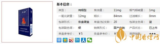 | 類型 :烤煙型 | 焦油量 :11mg | 煙氣煙堿量 :1mg | 一氧化碳量 :12mg |