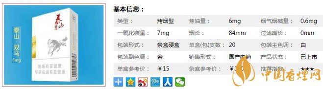 泰山6mg比中南海醇厚,比8MG的那款柔,不卡嗓子,生煙味也不濃,焦油量低,又短一口,對身體危害小,值得入手。經(jīng)香煙網(wǎng)小編市場調(diào)查泰山6mg售價為15元/包。