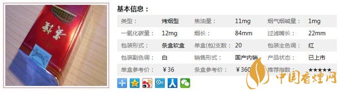 | 類(lèi)型 :烤煙型 | 焦油量 :11mg | 煙氣煙堿量 :1mg | 一氧化碳量 :12mg |