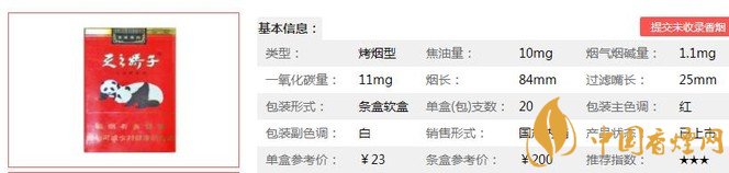 類型 :烤煙型 焦油量 :10mg 煙氣煙堿量 :1.1mg 一氧化碳量 :11mg
