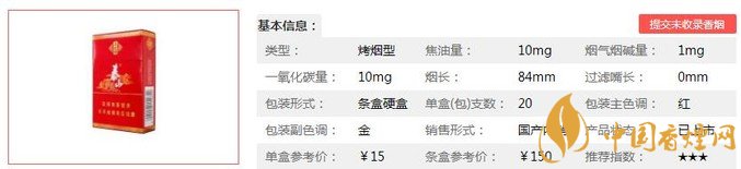 | 類(lèi)型 :烤煙型 | 焦油量 :10mg | 煙氣煙堿量 :1mg | 一氧化碳量 :10mg |