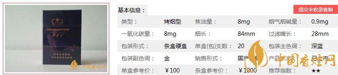 | 類型 :烤煙型 | 焦油量 :8mg | 煙氣煙堿量 :0.9mg | 一氧化碳量 :8mg |