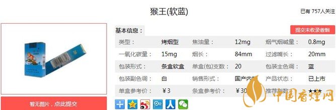 以上便是由香煙網(wǎng)小編為大家介紹的關(guān)于猴王軟藍價格及參數(shù) 陜西低價煙中的佼佼者的相關(guān)信息,想要了解更多有關(guān)內(nèi)容請點擊:猴王喜慶價格及參數(shù) 猴王喜慶獨家口感分析