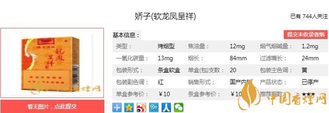 龍鳳呈祥經(jīng)典產(chǎn)品,嬌子新裝貴氣登場,品質(zhì)價(jià)格一脈相承。煙草本香透發(fā),煙氣細(xì)膩柔和,口感純凈舒適,回味綿長津甜,更特有紅茶香韻,淡雅怡然。經(jīng)香煙網(wǎng)小編市場調(diào)查嬌子軟龍鳳呈祥售價(jià)為10元/包。