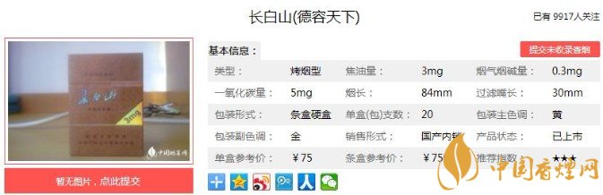 以上便是香煙網(wǎng)小編為大家介紹的關(guān)于長白山德容天下價(jià)格75元一包,復(fù)古的包裝才是亮點(diǎn)!的相關(guān)信息,看完之后大家是不是對于長白山(德容天下)的相關(guān)信息更加了解呢。大家還想查詢更多的相關(guān)內(nèi)容歡迎點(diǎn)擊:長白山天韻多少錢一包 長白山天韻口感及參數(shù)介紹