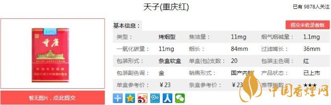地道重慶味的香煙天子(重慶紅)價格在23元一包!