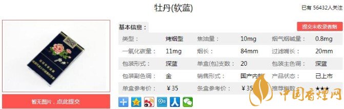 以上便是香煙網小編為大家介紹的關于清新包裝優(yōu)雅煙香,牡丹軟藍的價格35元一包!的相關信息,看完之后大家是不是對于牡丹(軟藍)的相關信息更加了解呢。大家還想查詢更多的相關內容歡迎點擊:牡丹金細支多少錢一包 牡丹金細支口感及參數(shù)介紹