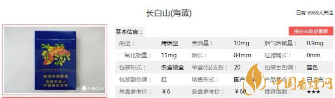 長(zhǎng)白山(海藍(lán))的性價(jià)比較高,海藍(lán)色的濾嘴顯得十分好看,抽起來的時(shí)候煙氣正好?,F(xiàn)在產(chǎn)品復(fù)出雖然無法全部找到當(dāng)年的產(chǎn)品回憶,但是焦油量還是非常值得肯定的。下面便是長(zhǎng)白山(海藍(lán))的基本參數(shù):焦油量:10mg 煙堿量:0.9mg 一氧化碳量:11mg.