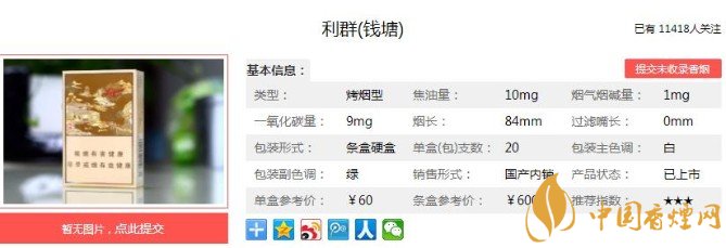 以上便是香煙網(wǎng)小編為大家介紹的關(guān)于利群錢塘香煙價(jià)格及口感點(diǎn)評,最漂亮的利群香煙!的相關(guān)信息,看完之后大家是不是對于利群(錢塘)這款香煙的相關(guān)信息更加了解呢。大家還想查詢更多的相關(guān)內(nèi)容歡迎點(diǎn)擊:利群休閑系第一款細(xì)支高價(jià)煙,僅僅是官方報(bào)價(jià)就達(dá)到了100元一包!