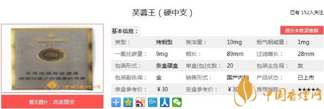 硬中支香煙,采用獨(dú)特自然醇化與低溫處理工藝,減少人工雕飾,使天然提取物和煙葉香氣渾然一體,保持優(yōu)質(zhì)煙草自然特征,以常煙獨(dú)創(chuàng)之配方,盡顯煙草原香。下面便是芙蓉王(硬中支)的基本參數(shù):焦油量:10mg 煙堿量:1.0mg 一氧化碳量:9mg.