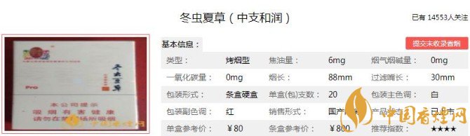 以上便是香煙網(wǎng)小編為大家介紹的關(guān)于冬蟲(chóng)夏草中支和潤(rùn)多少錢(qián)一包 冬蟲(chóng)夏草中支和潤(rùn)口感及參數(shù)分析的相關(guān)信息,看完之后大家是不是對(duì)于冬蟲(chóng)夏草(中支和潤(rùn))這款香煙的相關(guān)信息更加了解呢。大家還想查詢更多的相關(guān)內(nèi)容歡迎點(diǎn)擊:冬蟲(chóng)夏草香煙價(jià)格表圖(6種) 冬蟲(chóng)夏草(和潤(rùn))香煙細(xì)支價(jià)格1200/條