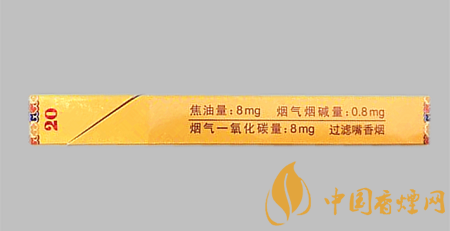 類型 :烤煙型 焦油量 :8mg 煙氣煙堿量 :0.8mg 一氧化碳量 :8mg