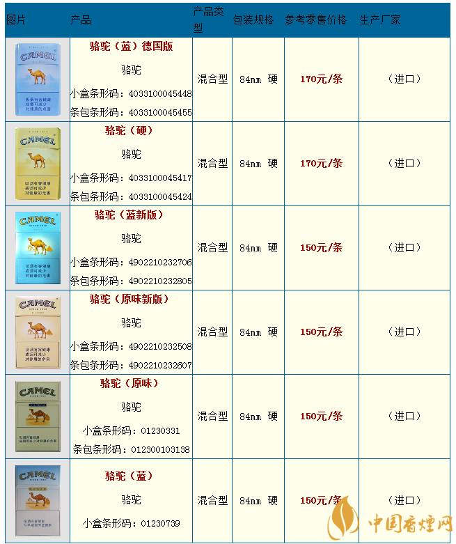 CAMEL香煙(駱駝香煙)價(jià)格表圖