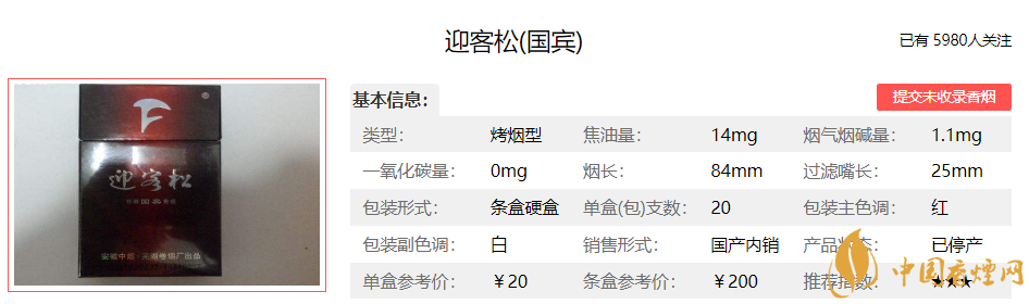 選用享譽(yù)中外的優(yōu)質(zhì)煙葉作為配方主體,產(chǎn)品香氣濃郁,煙氣厚實(shí)自然,口感舒適干凈。產(chǎn)品自然醇化,秉承迎客松產(chǎn)品一貫的優(yōu)良品質(zhì),精心配制,獨(dú)具香韻。即保持了迎客松優(yōu)美的清香風(fēng)格,又賦予成熟煙草的焦甜芬芳,香氣韻味豐富,渾然一體,著重體現(xiàn)優(yōu)雅細(xì)膩、醇和自然、清新宜人的特點(diǎn),口感舒適,回味甘甜,勁頭適中。經(jīng)香煙網(wǎng)小編市場(chǎng)調(diào)查迎客松特貢國(guó)賓售價(jià)為50元/包。