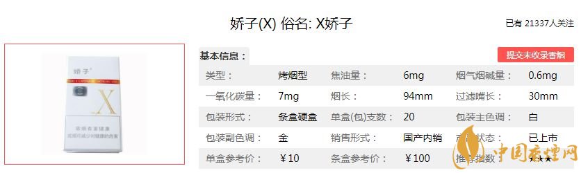 嬌子X多少錢一包 嬌子X價格表和圖片大全