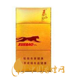 泰山(雪豹細支)包裝以淡雅的咖啡色為主色調(diào),包裝呈現(xiàn)三段式,上面右上角印著泰山的標志,中間主圖案由一頭奔跑的獵豹構(gòu)成,圖案繪制的比較簡約,但很有力量,比較振奮,最下面為警示標語,反面與正面基本相似。