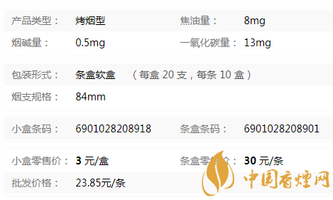 煙長(zhǎng):84mm 過(guò)濾嘴長(zhǎng):20mm 包裝形式:條盒軟盒 單盒(包)支數(shù):20