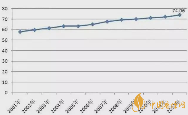 根據(jù)前瞻產(chǎn)業(yè)研究院發(fā)布的《2013-2017年中國煙草制品行業(yè)產(chǎn)銷需求與投資預測分析報告》,2001-2012年,中國煙草制品行業(yè)毛利率維持在57%以上的較高水平,且呈現(xiàn)逐年上升的態(tài)勢,到2012年行業(yè)的毛利率達到了74.06%。