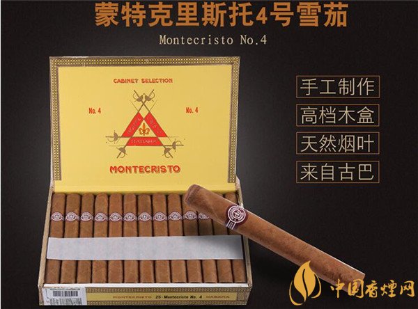 蒙特4號是繼蒙特3號之后出品的同系列的雪茄煙,相比蒙特3號茄體要短小些。在同系列里蒙特2號的人氣最高,這一點(diǎn)是全世界茄客都知道的。其實(shí)蒙特4號雪茄是一款潛力股的雪茄,被資深的茄客舉薦為入門茄之選。古巴雪茄多少錢一盒,下面就由香煙網(wǎng)小編來為大家介紹一下這款蒙特4號雪茄價(jià)格表圖。