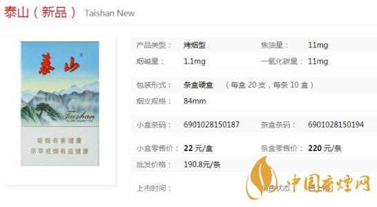 泰山新品精選優(yōu)質(zhì)進(jìn)口煙葉,采用純天然香精香料,香氣清雅濃馥、豐滿(mǎn)、諧調(diào)、吸味純正、口感細(xì)膩、余味純凈舒適,“清新自然、至尊泰山”是卷煙中的高檔精品。下面一起來(lái)看下泰山新品的具體參數(shù):一盒20支,煙長(zhǎng)84mm,焦油量11mg,煙堿量1.1mg,一氧化碳量11mg。