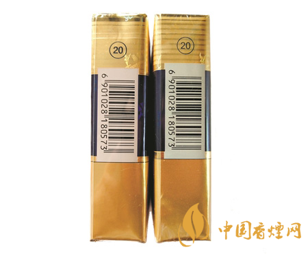真 假 商標(biāo)紙側(cè)面印刷工藝對(duì)比:真煙商標(biāo)紙側(cè)面條紋較窄、顏色較淺,圓圈和數(shù)字“20”顏色較深、位置較低,條形碼位置稍低;假煙商標(biāo)紙側(cè)面條紋較寬、顏色較深,圓圈和數(shù)字“20”顏色較淺、位置偏高,條形碼位置稍高。