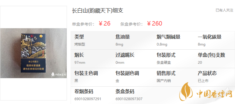 長白山細支香煙多少錢一盒 長白山細支香煙價格表圖大全