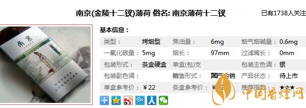南京薄荷味香煙參數(shù)信息