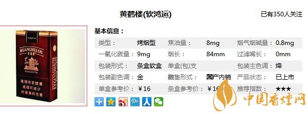 黃鶴樓香煙品牌作為一個歷史悠久的香煙品牌,它在國內香煙市場上的地位非常關鍵,它是代表著湖北香煙,而黃鶴樓香煙產品也是國內最多的,那么黃鶴樓軟鴻運多少錢一盒,現(xiàn)在就由香煙網(wǎng)小編為大家介紹黃鶴樓軟鴻運圖片價格。