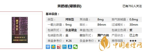 以上內(nèi)容是由香煙網(wǎng)小編為大家收集以及整理的關(guān)于,黃鶴樓硬雅韻多少錢(qián)一包以及黃鶴樓雅韻硬盒價(jià)格圖片相關(guān)的信息,了解更多有關(guān)信息請(qǐng)點(diǎn)擊:黃鶴樓雪茄型香煙價(jià)格表。