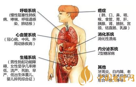 吸煙和疾病的關(guān)聯(lián)體現(xiàn)在方方面面,其中以癌癥、呼吸系統(tǒng)疾病以及心血管疾病最為常見(jiàn)。