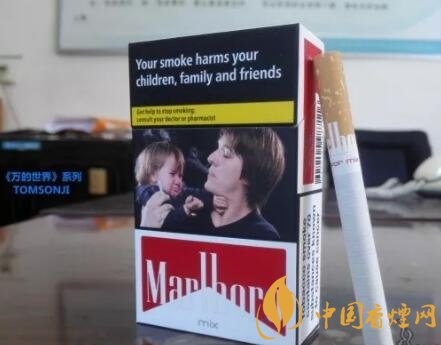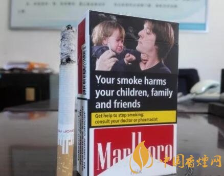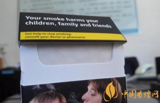 煙盒左右側(cè)面各印有黑框樣式的警示語句,也是后期歐盟版本萬寶路的煙盒包裝特點(diǎn)。