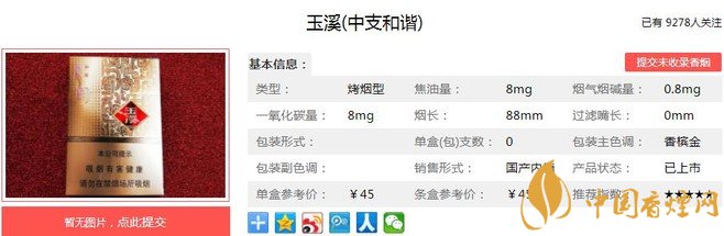 玉溪中支和諧是紅塔集團(tuán)高端突破的重點(diǎn)規(guī)格新品,產(chǎn)品傳承中國(guó)傳統(tǒng)文化理念,兼具中支和爆珠兩種創(chuàng)新品類(lèi)特質(zhì),使枇杷爆珠的果香與煙草本香相得益彰,吸味清香、甜潤(rùn)舒暢、平衡舒適。經(jīng)香煙網(wǎng)小編市場(chǎng)調(diào)查玉溪中支和諧售價(jià)為45元/包。