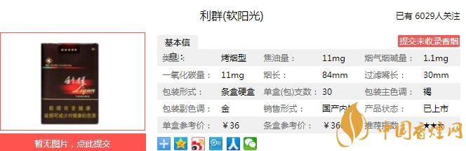 為了保證卷煙的香味品質,通過對所有倉儲煙葉中的高檔原料進行分析化驗和內在品質評定,選擇國內外香氣足、煙堿適中、焦油含量低的優(yōu)質煙葉,精心配比,在化學成份比例協(xié)調的基礎上,保證其突出的香氣風格和特征。經(jīng)測定,焦油和尼古丁的比值保持在10∶1左右的合理范圍,且焦油量進一步降低,煙氣更加柔和細膩。經(jīng)香煙網(wǎng)小編市場調查利群軟陽光售價為36元/包。