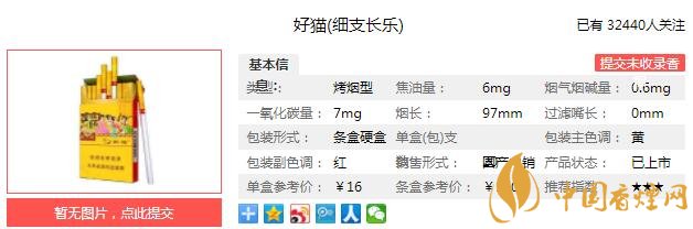 采用科學(xué)配方,運用新型材料、特殊制絲工藝,有效地降低了焦油含量;國寶級卷煙配方大師領(lǐng)銜設(shè)計,輔以國內(nèi)領(lǐng)先的生物補香工藝,萃出濃郁香韻,細(xì)致綿長,使得煙香更純正、香氣更飽滿。經(jīng)香煙網(wǎng)小編市場調(diào)查好貓細(xì)支長樂售價為16元/包。
