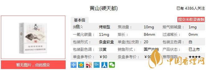 黃山硬天都加有獨(dú)具一格的石斛香珠,以其淡雅中藥之香,別于全開(kāi)寬版式天都。難得的,是中藥之香與傳統(tǒng)的焦甜之香融和到位,充分協(xié)調(diào),不僅讓“黃山”品牌在文化上實(shí)現(xiàn)升級(jí)突破,而且給消費(fèi)者帶來(lái)全新體驗(yàn),成為“黃山天都的特色之一。經(jīng)香煙網(wǎng)小編市場(chǎng)調(diào)查黃山硬天都售價(jià)為90元/包。
