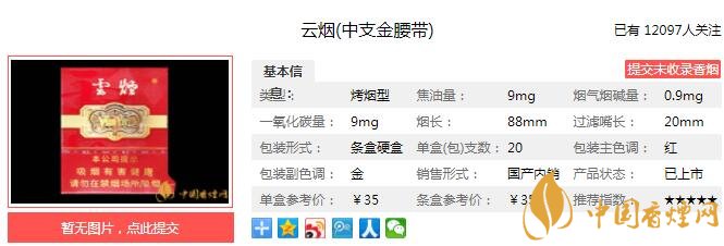 以上便是由香煙網小編為大家介紹的關于云煙中支金腰帶價格 云煙中支金腰帶參數(shù)及口感分析的相關信息,想要了解更多有關內容請點擊:利群新版多少錢一包 利群新版口感及價格介紹