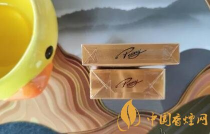 兩款牡丹的整體顏色十分相近,均為金色的主色調(diào),但是金細支的顏色要更深一些。兩款牡丹正面的主圖案基本一致,只是大小略有差異,都是牡丹花加牡丹二字,下半部是警示標語。在煙盒開封處,金細支的設(shè)計十分簡潔,煙盒處黑色條紋下寫著“SUPER SLIMS”,意思是超級苗條,也是在體現(xiàn)它是一款細支煙,在煙盒正面的左上角有著一豎排牡丹香煙的英文。